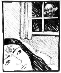 ![]() It wasn't long before an extraterrestrial influence began to make itself felt in our own household. First my father claimed he'd seen mysterious lights passing over the Continental Divide. Then there was the time my parents went out for a walk and returned saying they had spotted the tracks of an unearthly three-toed being in the snow outside. Soon afterward I discovered some inexplicable tracks myself, but still I was skeptical about the possibility of interplanetary contact; my imagination ran in more of a nineteenth-century gothic vein. For instance, I was convinced that the howling sounds produced by the hundred-mile-an-hour winds pounding our deck were actually the demonic cries of a giant, tormented black dog that haunted the roof above my room at night. My cynicism about UFOs began to erode when my father informed me that my mother had been briefly abducted by aliens late one night when she got up to adjust the thermostat. My dad found her unconscious on the kitchen floor; when she came to, after more than an hour, she had no recollection of what had happened. Dad concluded that she had been abducted by space monkeys. He had heard them in the walls that night, speaking some kind of high-pitched digital language. After that I made sure to listen for these interplanetary gibberings over the dog's howl that continued to disturb my sleep.
